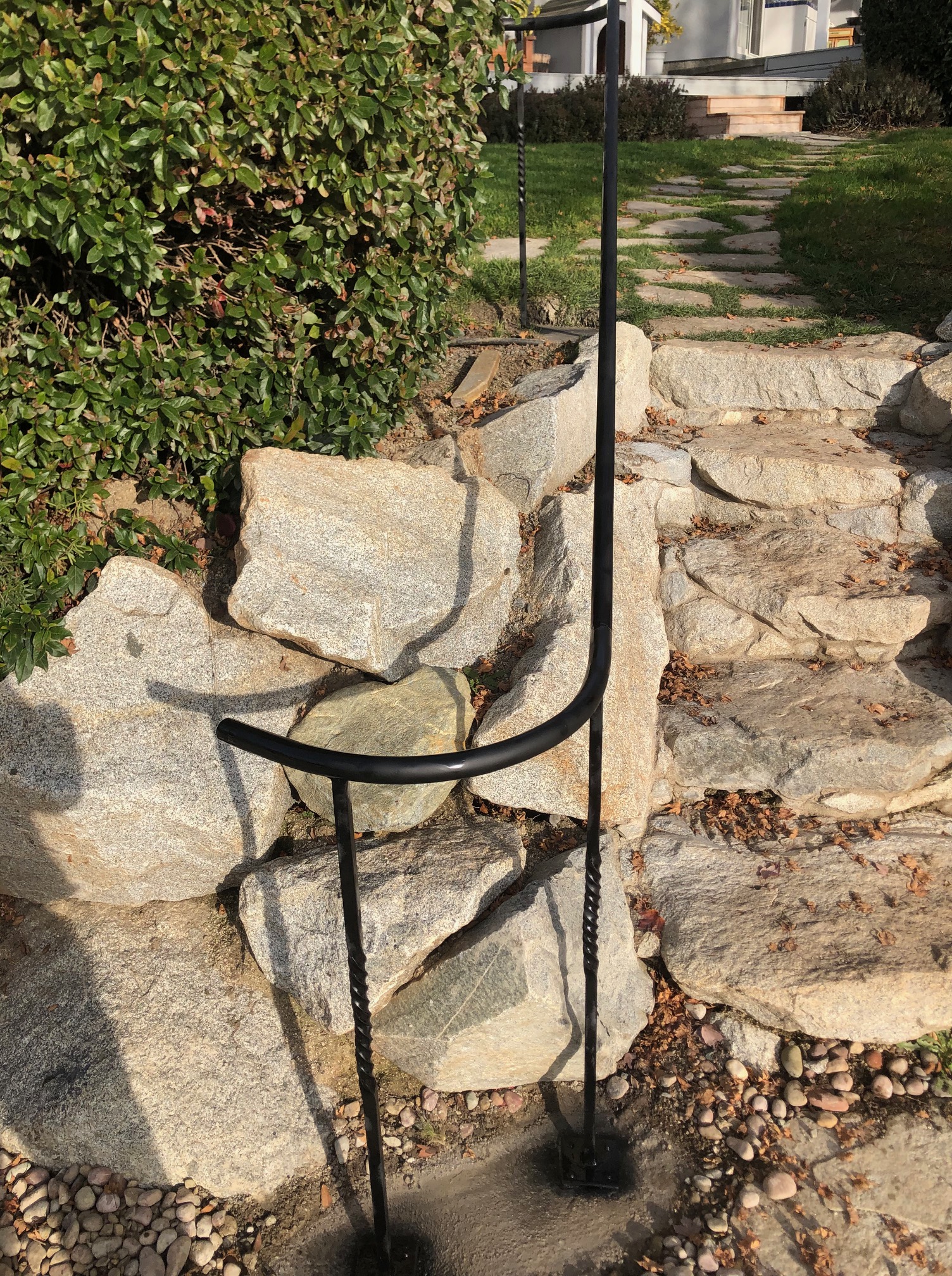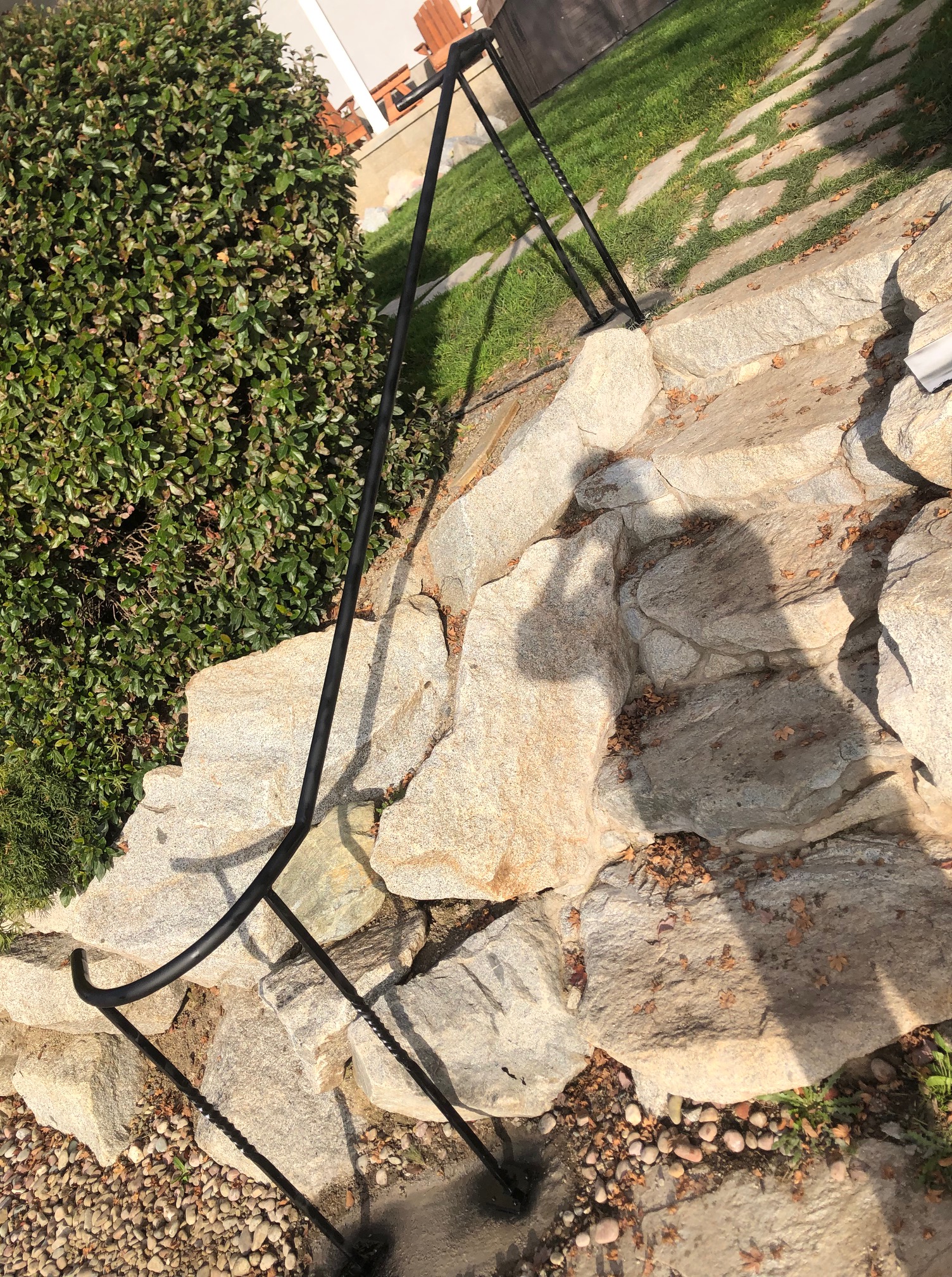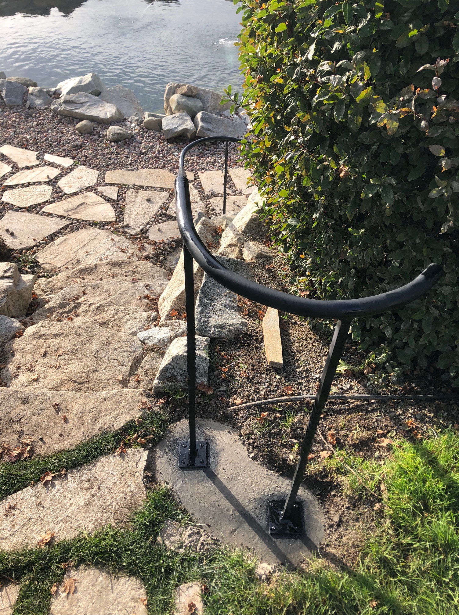 A simple steel hand rail I fabricated and installed with concrete,