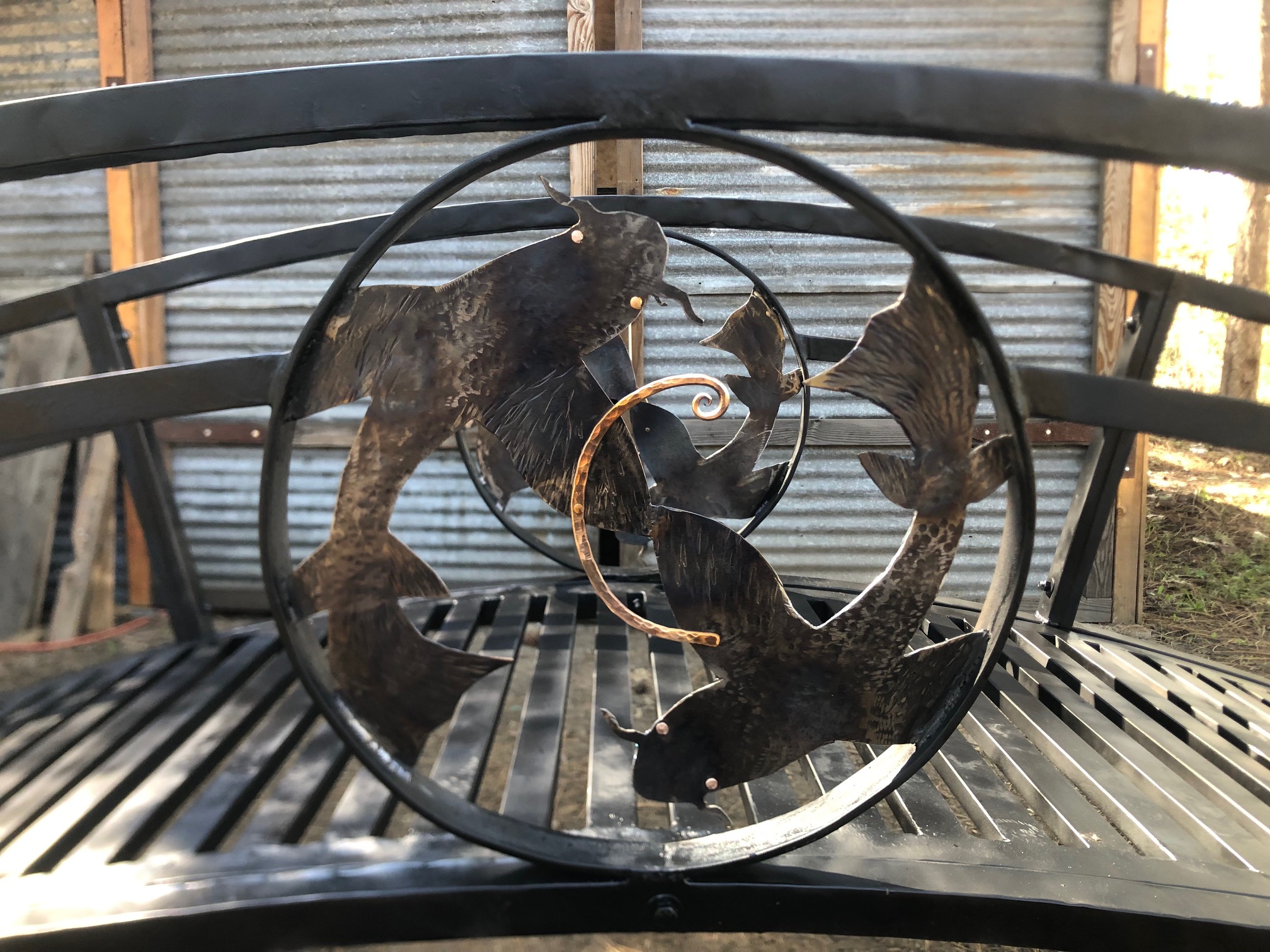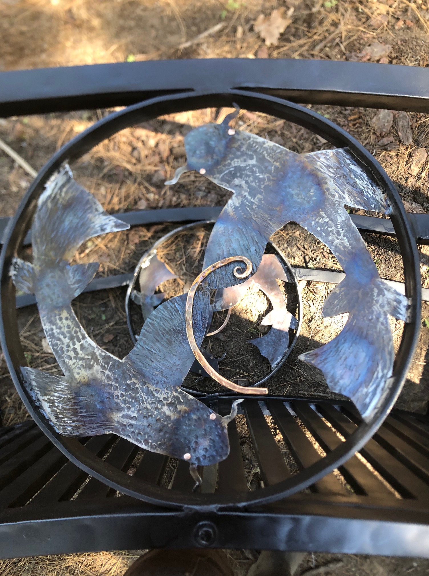 I was honored to build a steel bridge to span a local clients Koi Pond the work took place during the Pisces season culminating with its installation on the new moon in Pisces, Just before the Spring equinox.