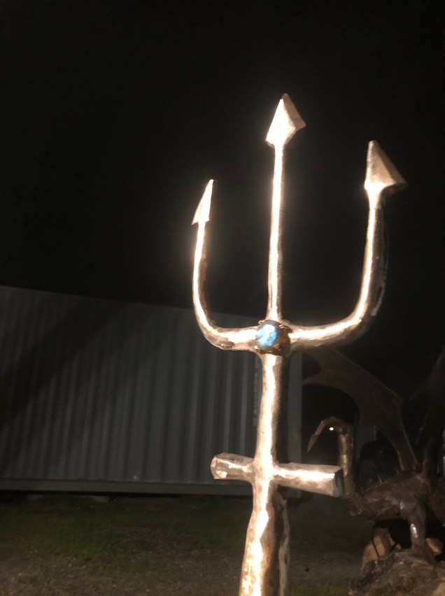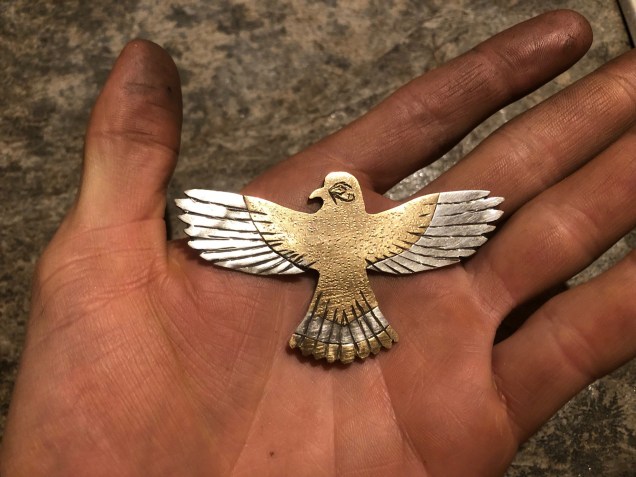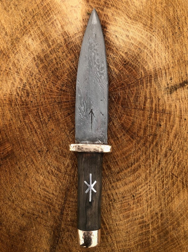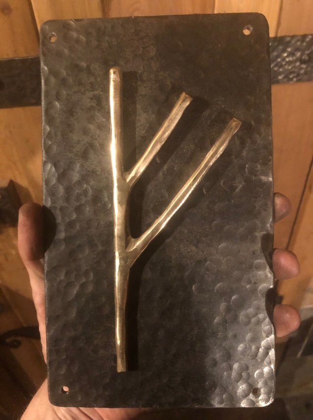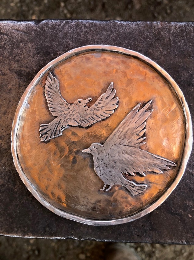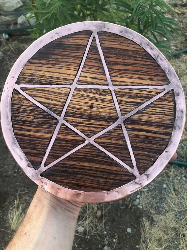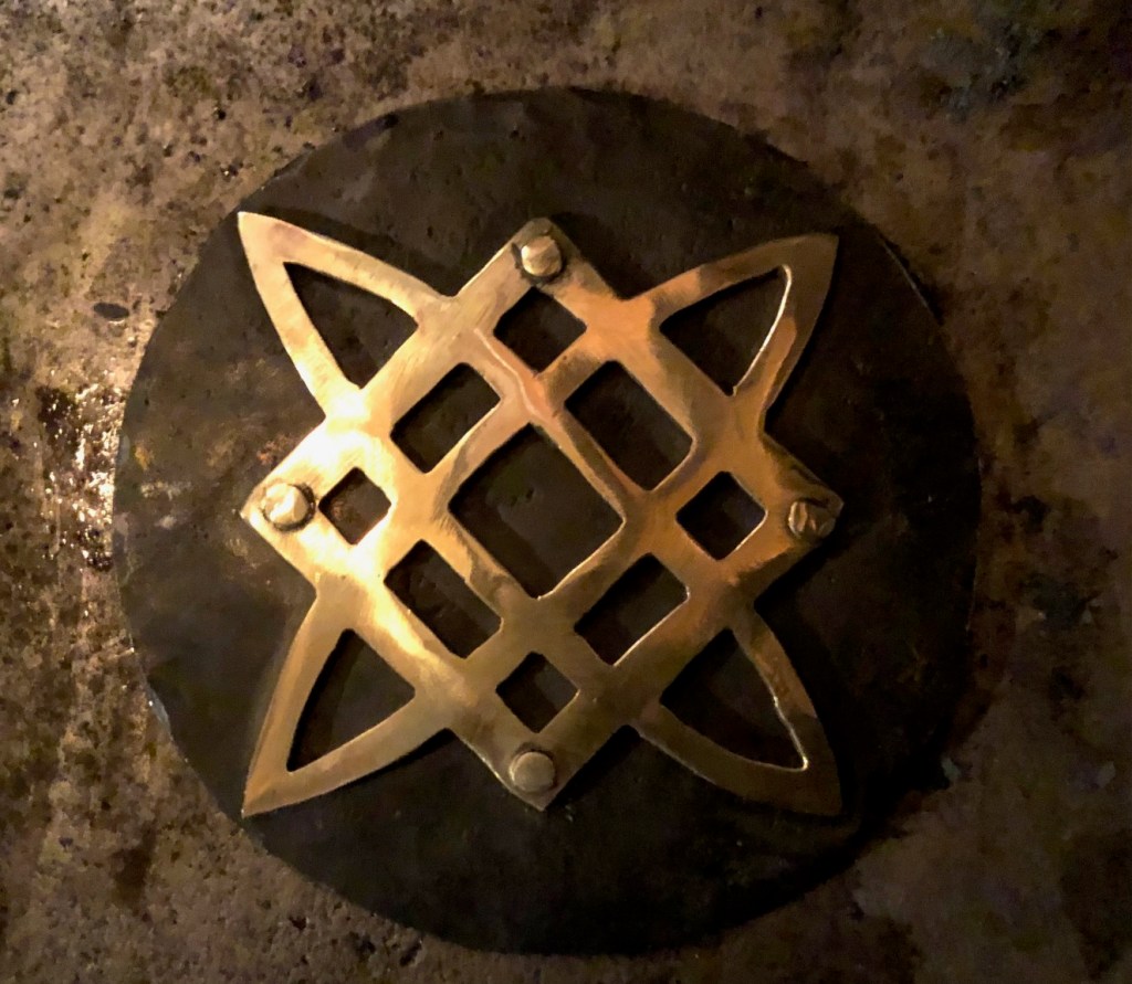 I warn you, whoever you are, Oh! You who want to probe the “Arcana of Nature”, that if you do not find “within yourself” that which you are looking for, you shall not find it outside either! If you ignore the excellencies of your own house, how do you pretend to find other excellencies? Within you is hidden the treasure of treasures! “Know Thyself” and you will know the Universe and the Gods Words attributed to the oracle of Delphi, the temple of Apollo, Pythagoras and the mystery traditions of deepest Antiquity. Silver, Bronze, Brass, and Laboradite solar wings, with Bronze lettering on a textured and darkened Steel plate. 8”x 16” 2023The Star of Rus the Star of Svarog The Craftsman’s Seal Bronze on darkened steel. 2023The Fire Letter of Fehu Bronze on Steel 2024The Trident Of Neptune. Cast Spring 2019 Copper and Zebra Wood Pentacle altar top. Bulat Steel Athame dagger Silver Bronze and Black walnut handle Copper GrailThe Cross and the circle are symbols that predate Christianity for thousands of years. As they are symbolic of the cycles of nature the path of the sun, (equinoxes and solstices) as well and larger galactic cycles. The cross itself is also a symbol of Matter and thus the planet Saturn in Astrotheology who’s cube we reside inside of the cross being a flat packed cube. The Rose on the cross a symbol of the sacred feminine represents the spirit or soul of the being rising out of material darkness. Christianity was just the latest incarnation of the solar mythos, that being one who embodied the Solar principle of Right action.Huginn and Muninn (Thought and memory) medallion in sterling silver and bronze.Badge of the Heru Horus the falcon.Celtic Triskellion